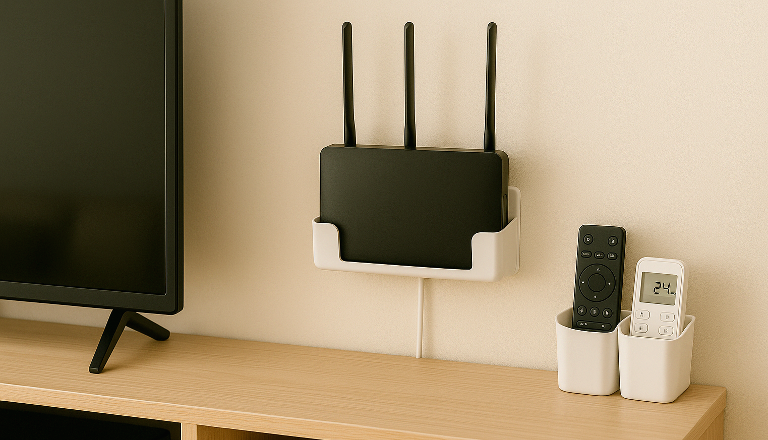 거실 전자기기 정리법! 케이블 정리 박스, 클립·타이, 공유기 선반, 리모컨 거치대, 멀티 충전 스테이션으로 깔끔한 거실을 만드는 방법을 알려드립니다.